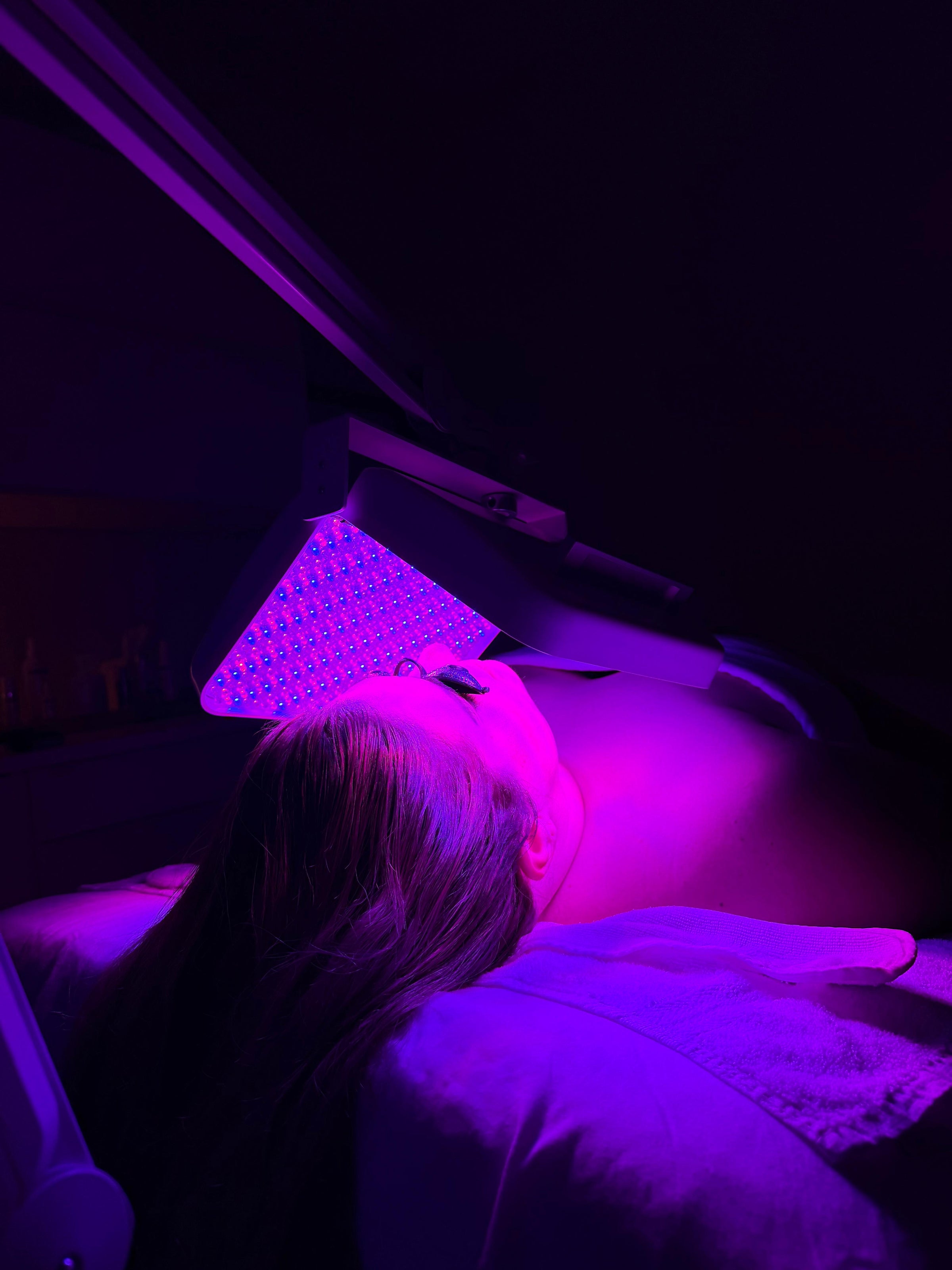 LED Light Therapy uses clinically proven wavelengths of light to stimulate collagen production, calm inflammation, reduce redness, and improve overall tone and texture. It’s a non-invasive treatment suitable for most skin types and especially beneficial during the winter months.